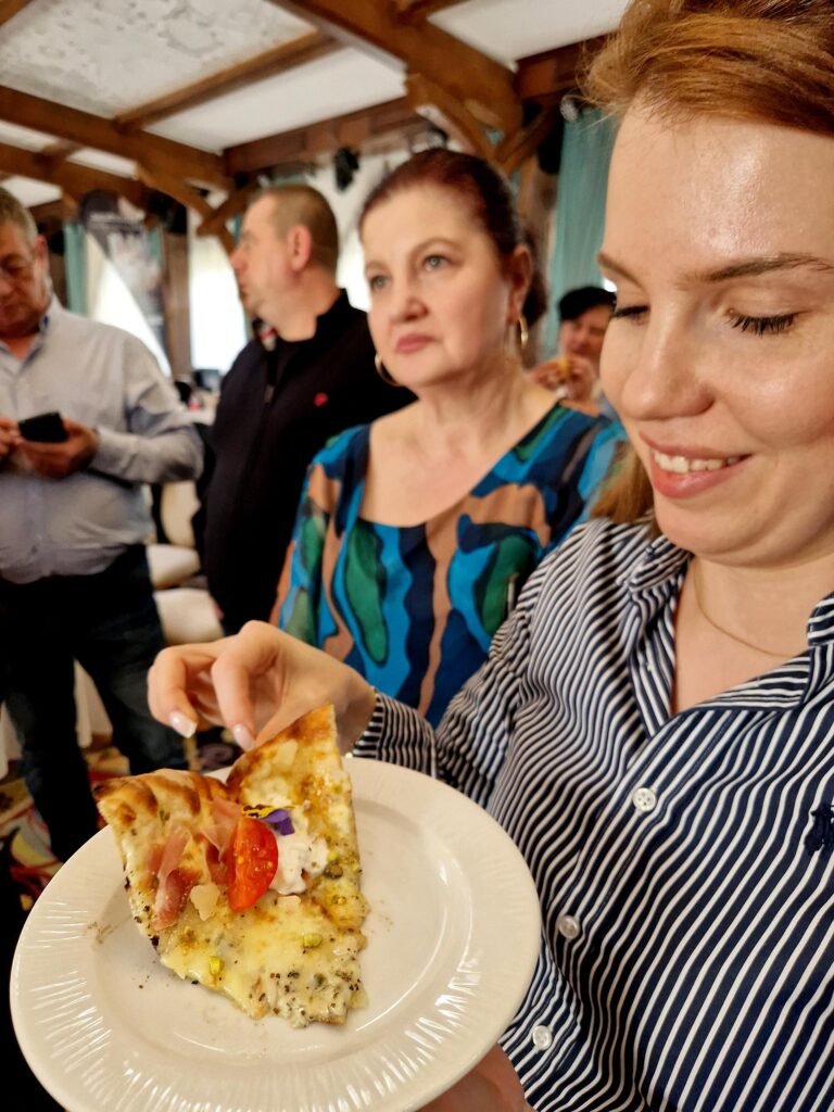 Catalin Secuian a oferit si de aceasta data participantilor o experiență de neuitat: s-a discutat mult despre prefermenti - biga și poolish, diferențele dintre ei și recomandarile de utilizare. S-a exersat întinderea și pregătirea diverselor tipuri de blaturi de pizza: pizza clasică, pizza calzone si pizza tonda romana si s-au impartasit detalii esențiale despre combinarea ingredientelor, coacere și tipurile de cuptoare.